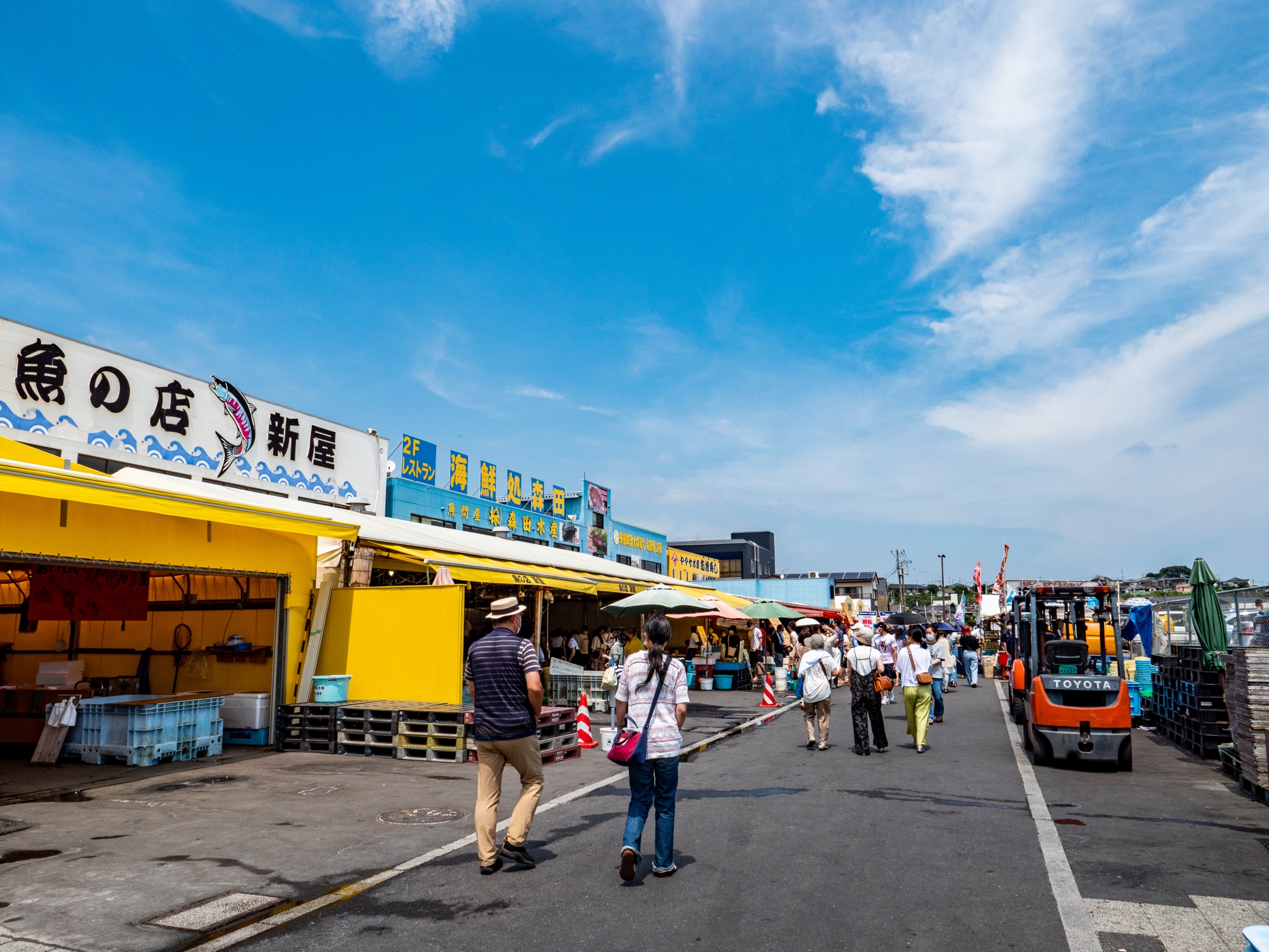 The fish market is accessible by a short drive or a 15-minute walk from Aqua World Oarai aquarium. It is also a short train ride from Hitachi Seaside Park, making it an ideal sightseeing spot in central Ibaraki.